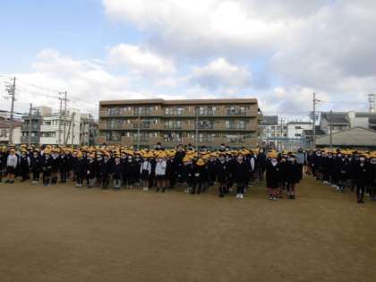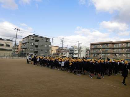 運動場に集まった児童のみsナさんは、目が輝いていました。