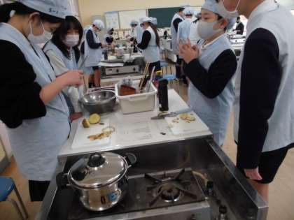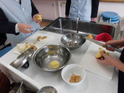 包丁に慣れていない子もいましたが、班で協力して取り組めました。