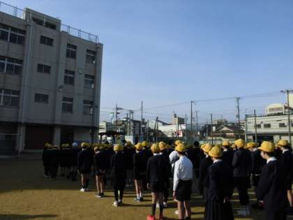 今日は運動場で児童朝会をしました。