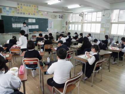 今日は、歯科医の先生と歯科衛生士さんを招いて、フッ化物洗口を行いました。