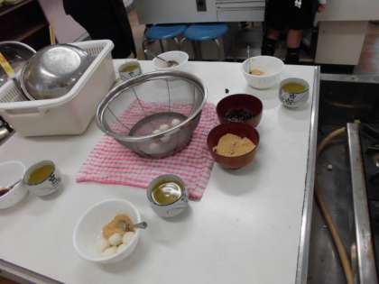 きな粉とあんこを添え完成しました。お茶の入れ方も学習して、おいしくいただきました。