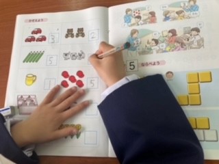 車や鉛筆の数をかぞえて、正しく数字で書いていました。