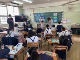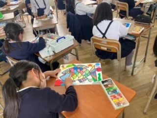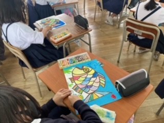 3年生が図工の学習で、色とりどりのカラフルな魚に取り組みました。