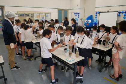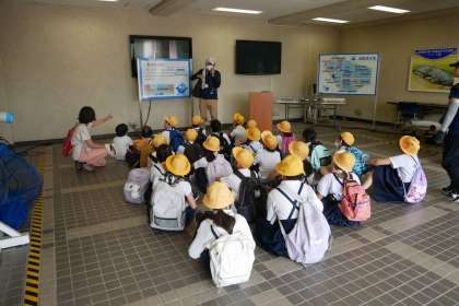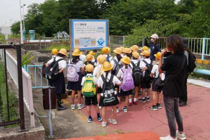 今日は、とても良い天気に恵まれ、暑いほどでしたが、子どもたちは担当の方の説明をしっかりと聞きながら施設の見学をすることができました。最後に、水のろ過の仕組みを実験を通して体感して、有意義な見学となりました。