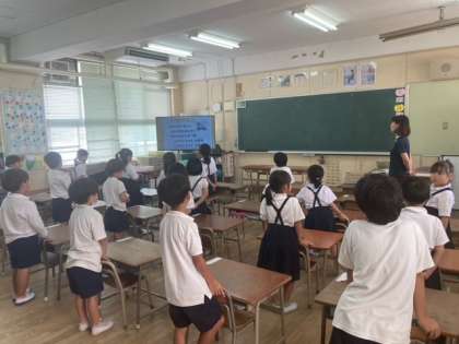 5時間目に1学期終業式をリモートで行いました。教室で大阪市歌、校歌を歌った後、学校長からのお話、生活指導の先生から夏休みの過ごし方について説明がありました。長い夏休みですが、目標や計画をしっかり立てて、健康に過ごしてください。