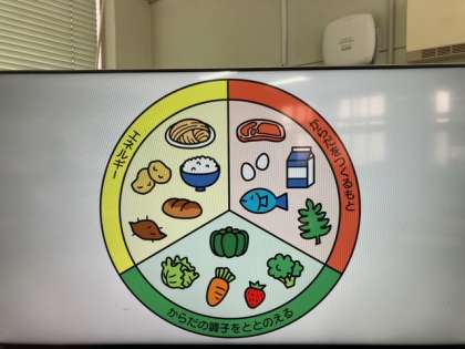 3つの栄養素、エネルギーのもとになる、体をつくるもとになる、体の調子を整えるもとになる、黄、赤、緑の栄養素をバランス良く食べると体が元気になることを学習しました。