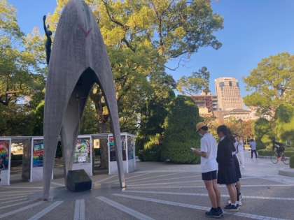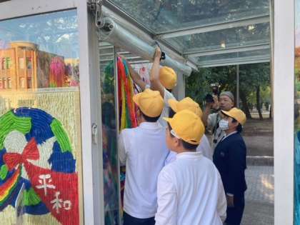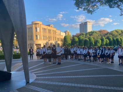 最後は平和集会です。全校児童で折った千羽鶴を飾り、代表の児童が平和宣言を行いました。