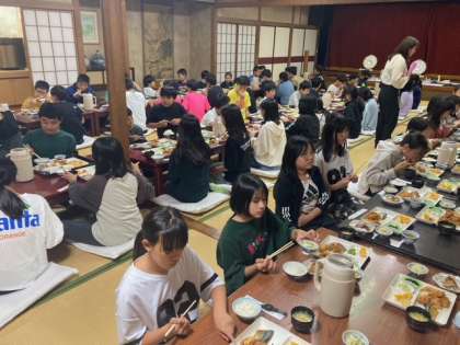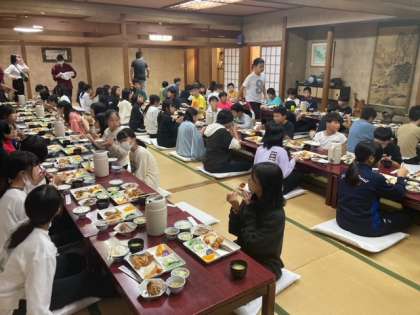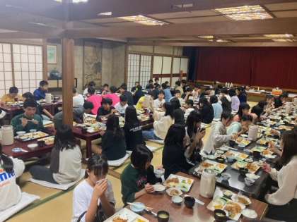 楽しみにしていた夕食の時間です。わいわい楽しく食事をしています。