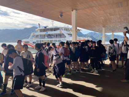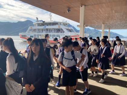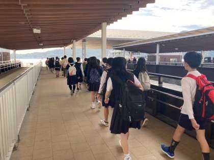 宮島口へ到着しました。今からフェリーに乗船します。