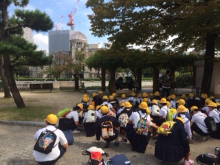 12時30分、予定通りに広島平和記念公園に到着しました。道中酔う子もおらず、皆とても元気です。天気は晴れ、これから昼食です。