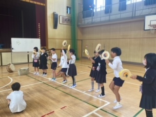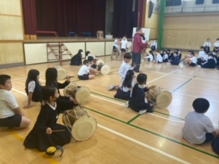 2時間目に3年生がサラム実践を行いました。韓国、朝鮮の楽器を使って楽しみながら演奏し韓国、朝鮮の文化に触れることができました。