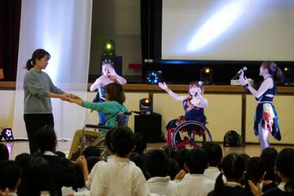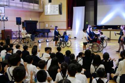 2・3時間目に3年生、4年生の児童を対象に車いすダンス講演会を行いました。車いすでのダンスのショーを観たり、実際に車いすに座る体験もできました。文化芸術に親しみ、障がいへの理解を深める鑑賞・体験をすることができました。