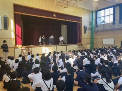 今日の児童集会は、21日土曜日に中国語弁論大会で発表した児童が全校児童に向けて発表しました。大きな声で立派に発表し、これまでの練習の成果を発揮することができました。