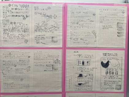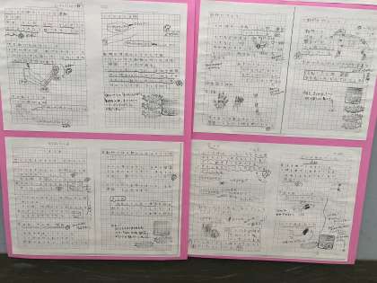 4年生の教室前廊下に理科のノートが貼り出されていました。単元最後のまとめとして、見やすく分かりやすくまとめられていました。
