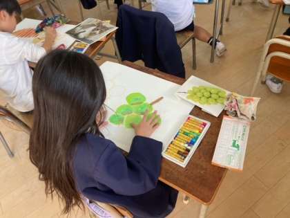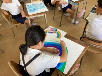 5時間目、2年生の教室を覗いてみると、図画工作科でパスの塗り方の学習をしていました。動物や食べ物などの絵を丁寧に塗っていました。どんな作品に仕上がるのか楽しみです。