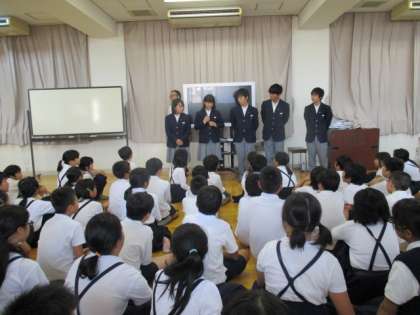 5時間目は平野中学校の体育担当の先生による出前授業(集団行動)、6時間目は生徒会による学校紹介がありました。来春に進学する学校や先生のことを知るよい機会となりました。