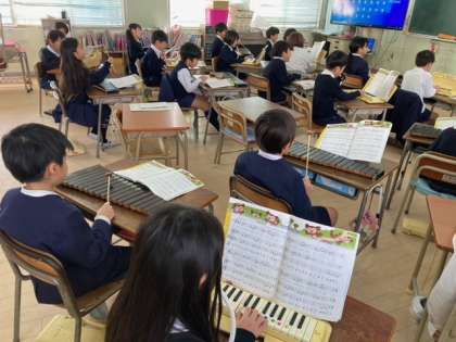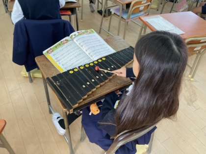 2年生が音楽の時間にアイアイの曲を鍵盤ハーモニカと木琴をつかって演奏しました!