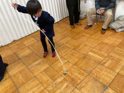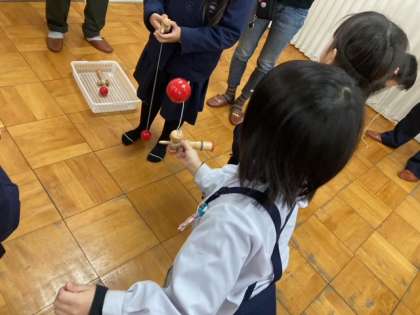 こま、けんだま、だるまおとしなど、たくさんの遊びを教えていただきました。