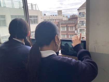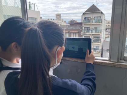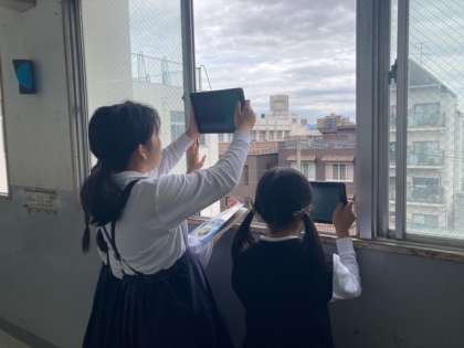 タブレットの動画機能を使って雲を観察し、時間が経つと雲がどのように変化するのか調べました。
