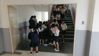 今年度初めての火災による避難訓練を行いました。しっかりとハンカチで口や鼻をおさえながら運動場に避難しました。