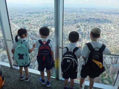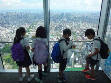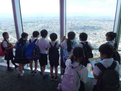 3年生があべのハルカスへ社会見学に行きました。グループに分かれて大阪市の四方の様子を見学しました。天気も良く遠くまでよく見えました。