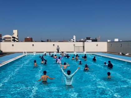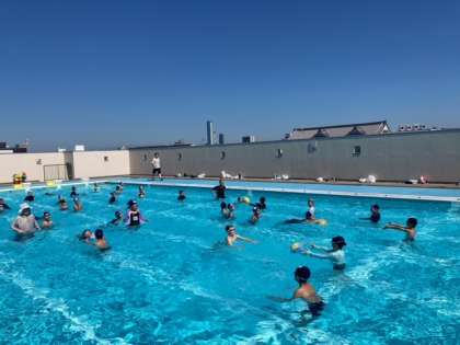 水慣れの体操をしたり、ボールを使ってリレーをしたり楽しみながら学習しました。