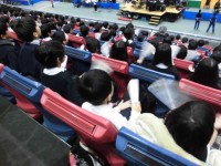 3時間目に1年生が2クラス合同でお楽しみ会をしました。リズムに合わせて踊ったり、ボールを使ったゲームをしたりして楽しみました。