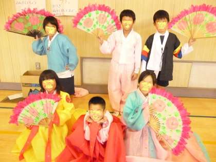 各学年が韓国・朝鮮の遊びや楽器、衣装などを体験し、伝統文化を学びます。