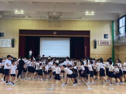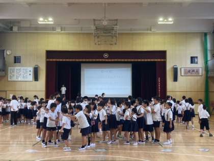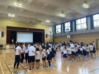 今日のゲームは「じゃんけん列車」です!久々にたてわり班で活動し、大いに盛り上がりました!
