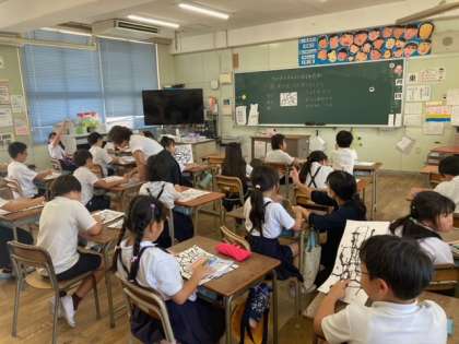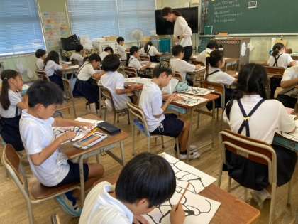 3年生は図工で「流れる墨から生まれたかたち」を学習しました。