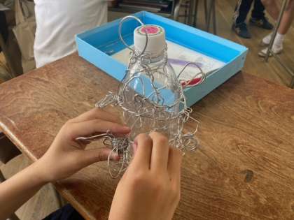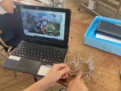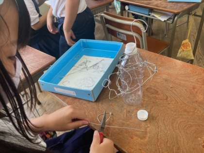 5年生が図工の時間に針金を使った立体作品に取り組んでいます。
