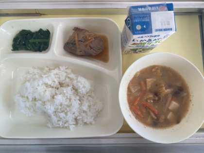 今日の献立は、なまり節の生姜煮、なめこのみそ汁、ほうれん草のごま和えです。