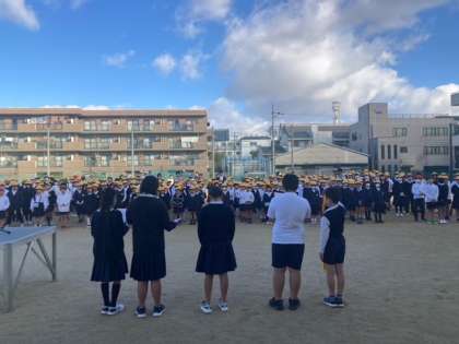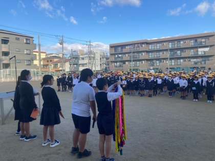 6年生が来週25、26日に広島方面へ修学旅行に行きます。今日の全校朝会は修学旅行に行ってきます!集会を行いました。