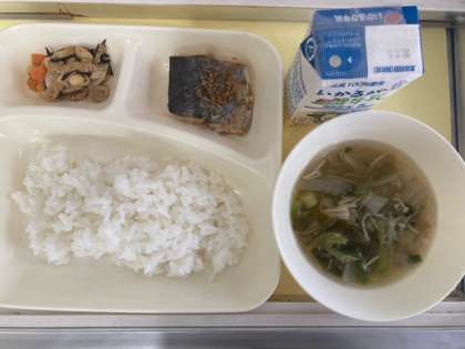 今日の献立は、さごしのごま醤油かけ、すまし汁、大豆の煮ものです。