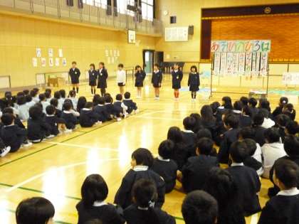西平野幼稚園・いちょう保育園の年長さんを招待していっしょに遊びました。1年生が作ったいろいろな遊びのコーナーを楽しんでくれていました。