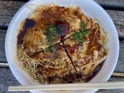近くの広島焼きのお店から平和記念公園まで届けていただきました!