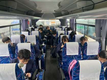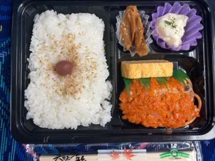 芝生で食べる予定でしたが、雨が降っているためバスの中で食べました。