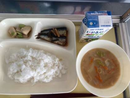 今日の献立は、いわしの生姜煮、味噌汁、高野豆腐の煮ものです。