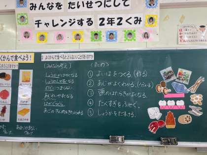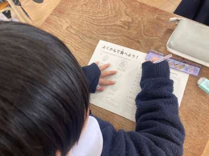 よく噛んで食べると、どのような良いことがあるのか学習しました。