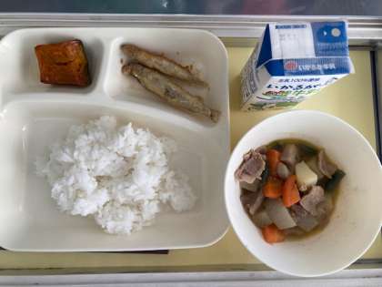 今日の献立は、きびなご天ぷら、含め煮、焼きかぼちゃの甘みつかけです。