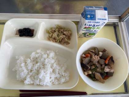 今日の献立は、筑前煮、ツナとキャベツのごま炒め、黒豆の煮物です。