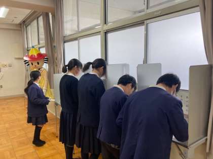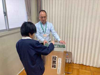 平野区役所から出前授業に来ていただき、6年生が選挙の模擬体験を行いました。実際の選挙で使われている記載台や投票箱を使って体験しました。最後は選挙結果の集計も自分たちで行いました。