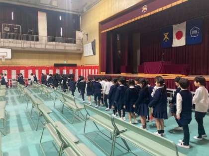 1年生が入学式で新入生を迎える発表の練習をしています。みんな大きな声でしっかりと発表し、元気な歌声も響き渡っていました!