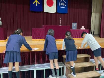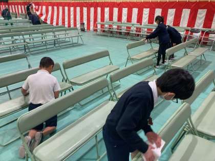 講堂の舞台や椅子、廊下から階段まで綺麗に清掃してくれました。もうすぐ最高学年になる5年生!素晴らしい働きぶりでした!