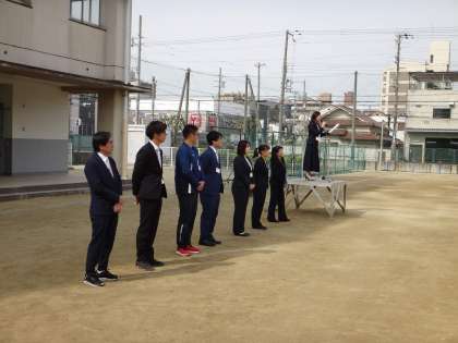 新たに来られた教職員の方を紹介した後、担任の先生を発表しました。