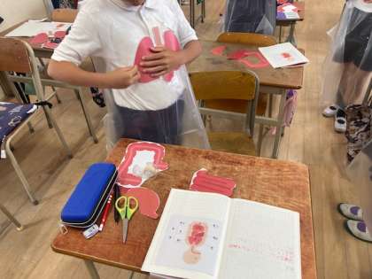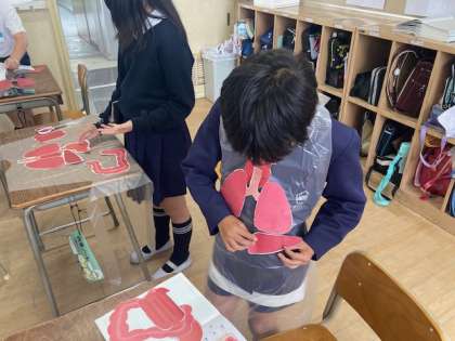 6年生が理科「ヒトや動物の体」の学習で、どの臓器がどのようなはたらきをするのかについて調べました。