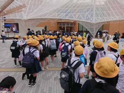 今日は5年生が春の遠足で関西万博に来ています。今から大阪ヘルスケアパビリオンに入ります!