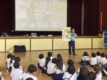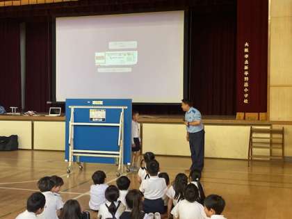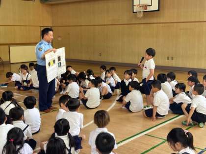 今日は平野警察の方に来ていただき、交通安全指導を行いました。