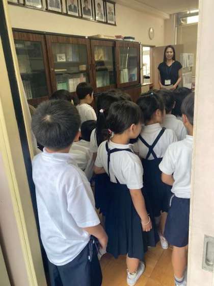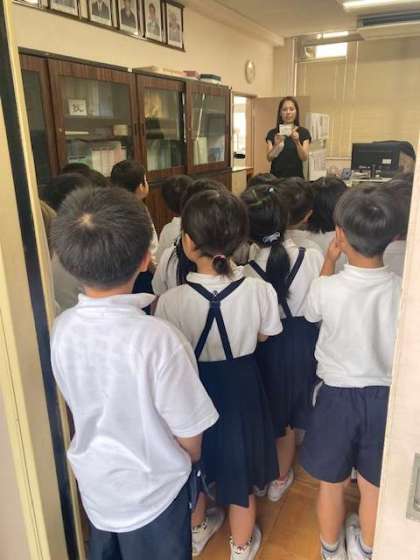 今日は1年生が学校探検で校長室に行きました。校長先生のお仕事をインタビューしたり、校長室の様子をワークシートにまとめたりしました。挨拶もしっかりできました(^^)