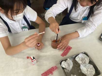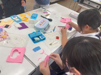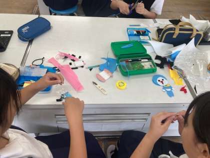 科学クラブでは「ゼリー石けん」づくり。刺繍クラブはそれぞれ作りたいキャラクターなどのマスコット人形を作りました。